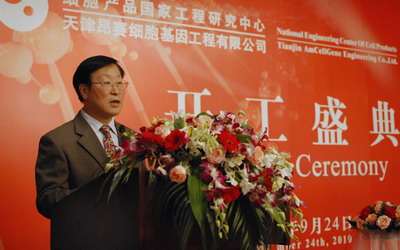 ??? 2010年9月24日上午,細(xì)胞產(chǎn)品國家工程研究中心研發(fā)大樓奠基式在天津?yàn)I海新區(qū)隆重舉行。會(huì)議由天津昂賽細(xì)胞基因工程有限公司副總經(jīng)理主持,細(xì)胞產(chǎn)品國家工程研究中心主任韓忠朝教授致詞,天津市科委副主任陳養(yǎng)發(fā)及濱海新區(qū)科委主任黃亞樓都在奠基儀式發(fā)表講話。