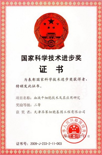天津昂賽細胞基因工程有限公司獲得國家科技進步二等獎